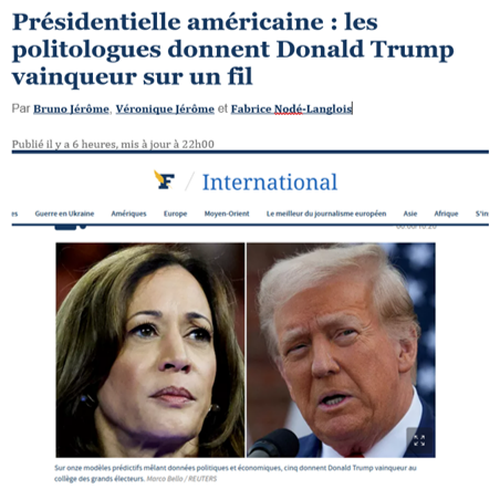 2] Une version revisitée du modèle par Mongrain, Nadeau, Jérôme et Jérôme est publiée sur le site de la revue PS : Political Science and Politics dans le Symposium dédié à la Présidentielle US de 2024 (Philippe Mongrain et Mary Stegmaier, Guest Editors).
